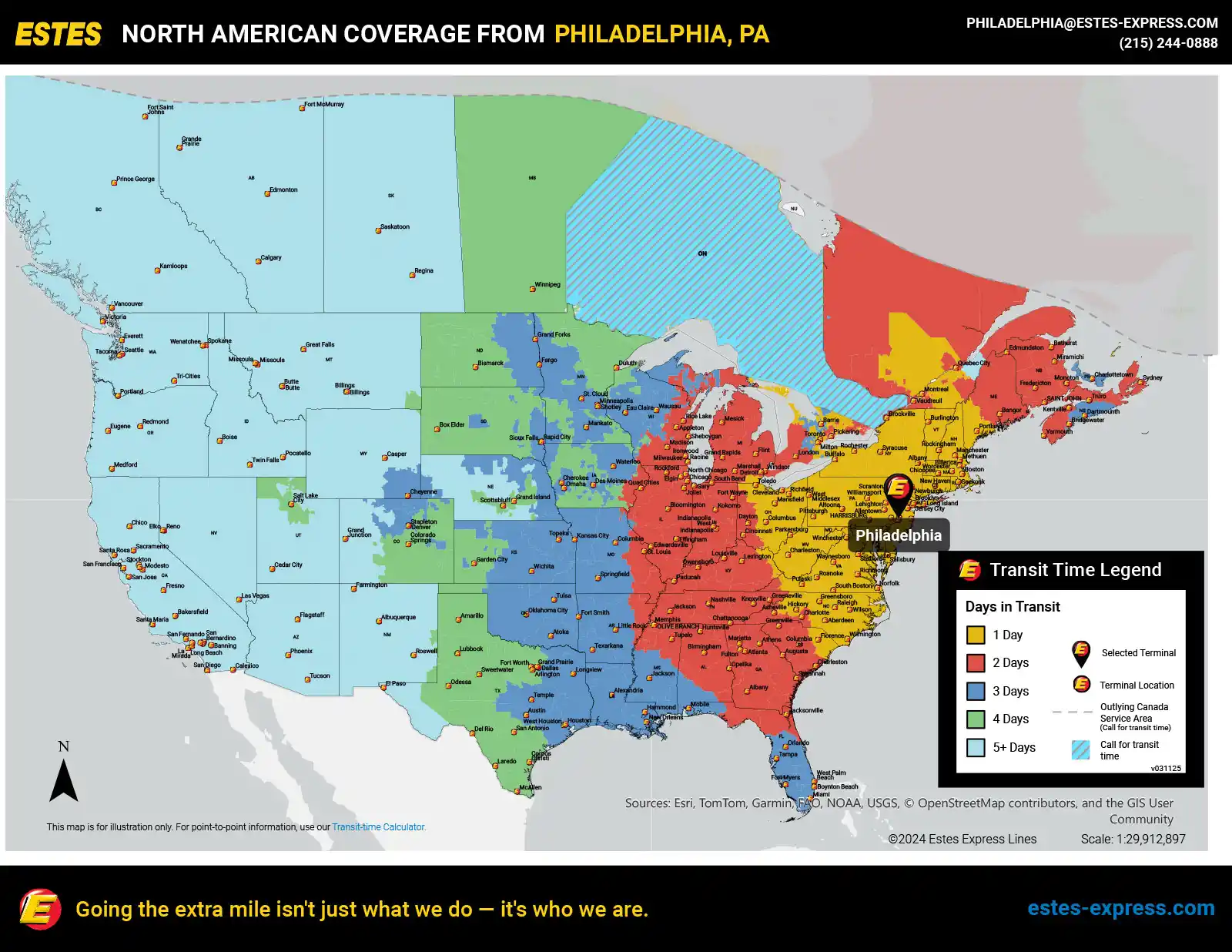 Estes offers next-day LTL freight shipping from the Trenton-NE Philadelphia area to NYC, Boston, DC, Toronto, Charlotte, Montreal, Pittsburgh, Cleveland, Columbus, Buffalo, Baltimore, Raleigh, New Haven—and beyond.